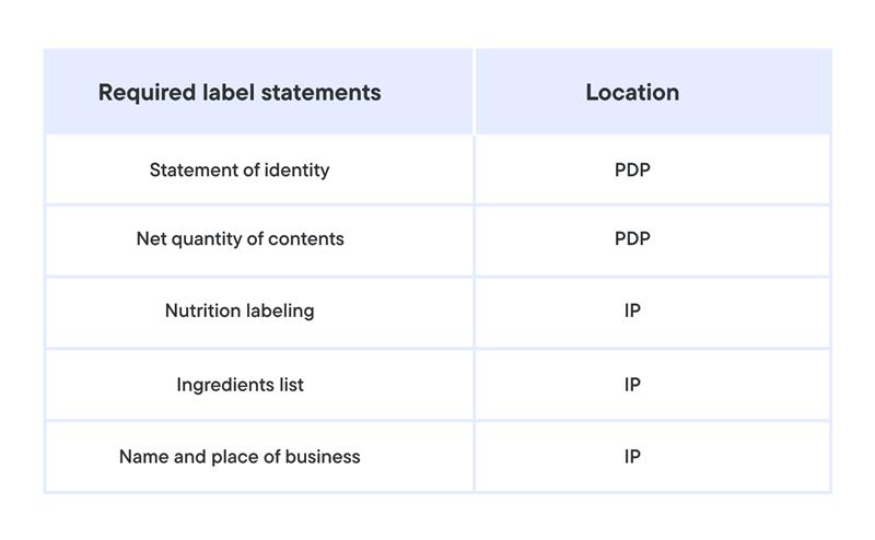 The FDA requires that these statements be visible and placed in specific areas on the label. All statements must be located either on the front Principal Display Panel (PDP) or the Information Panel (IP).
