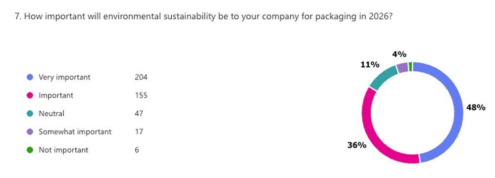 In Esko’s 2026 Packaging Trends Survey, 84% of respondents said sustainability would be important or very important for their company’s packaging in 2026. That figure has risen steadily from 77% in 2024 to 80% in 2025, showing a clear upward trend in priority year over year.