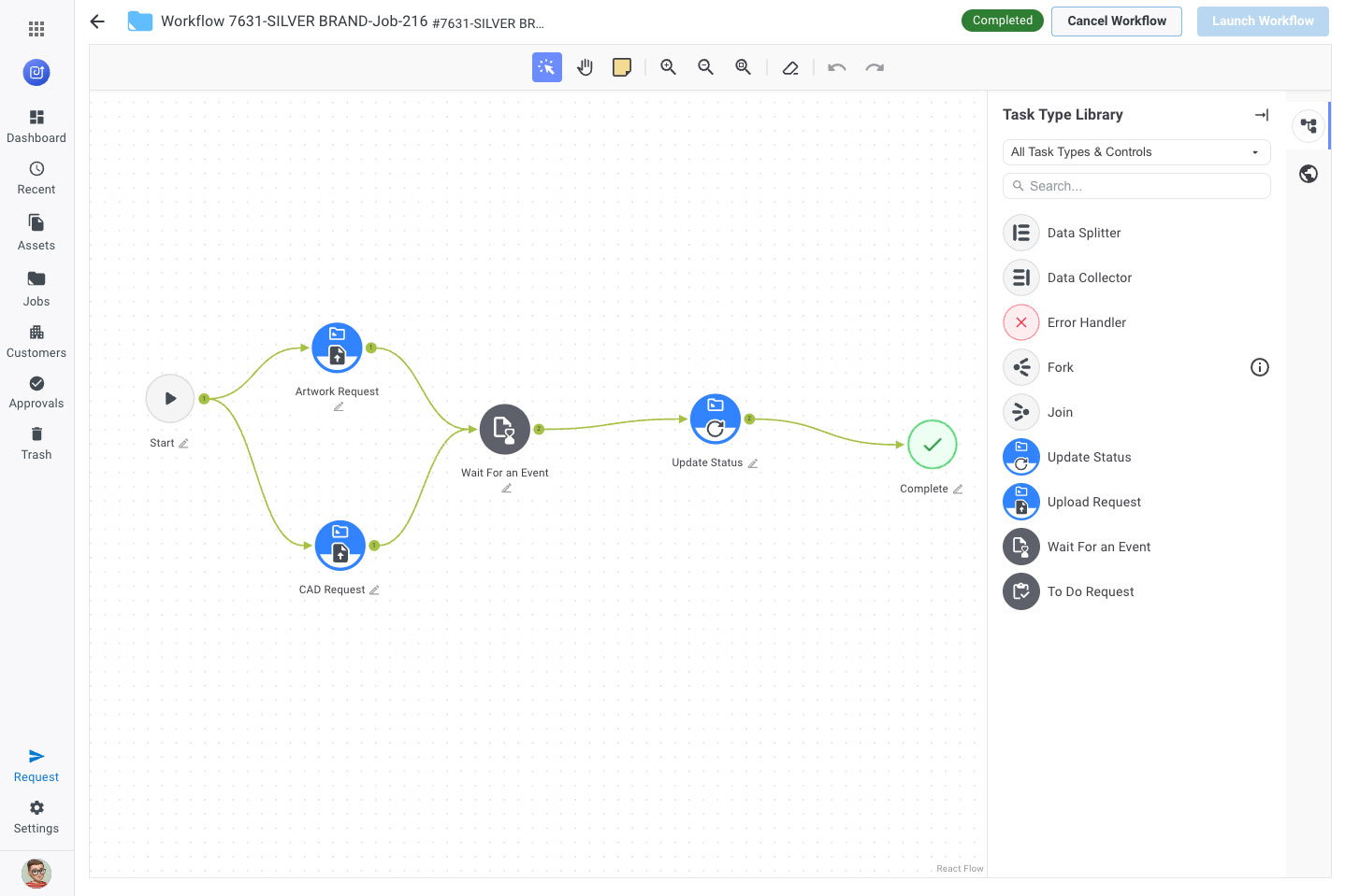 - Chained Tasks: Build sequential task flows (e.g., upload → review → status update) to automate multi-step job management.