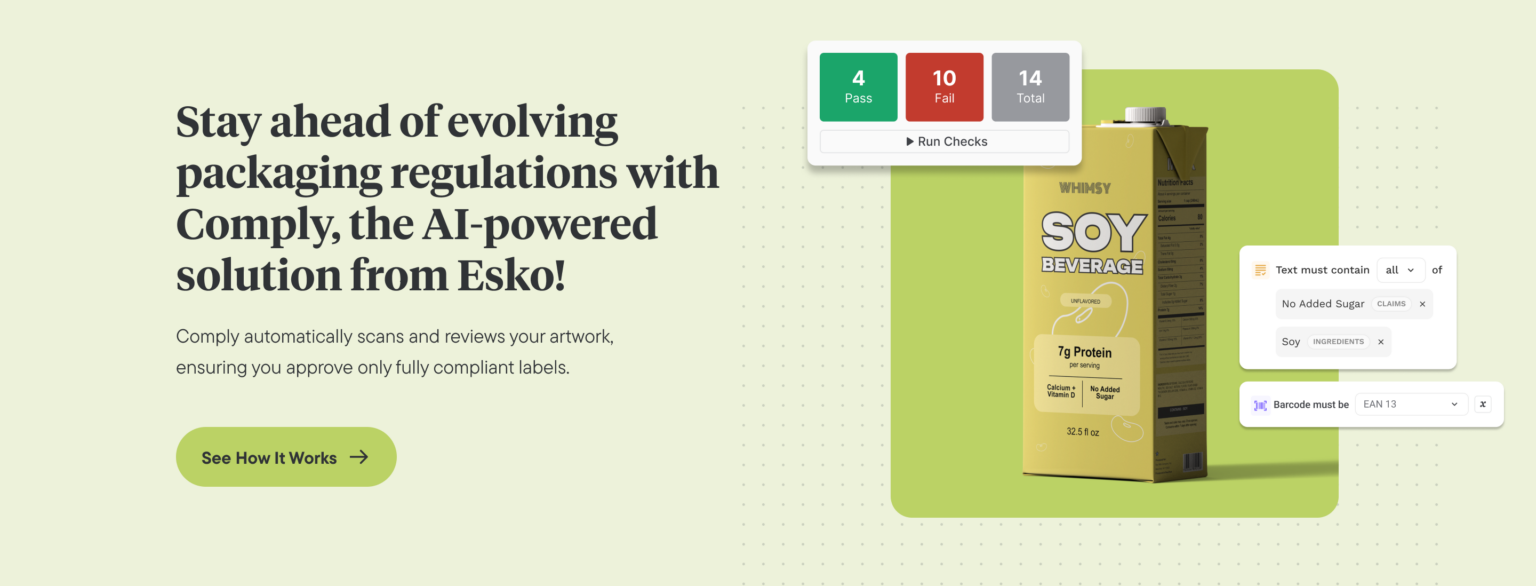 Plant-based labeling rules shift constantly by region, product type, and sometimes even quarter. Tracking all this manually is nearly impossible, especially when each market has its own naming standards, claim restrictions, and visual-presentation rules. That’s exactly why Comply exists. Comply is an AI-powered automated label compliance solution which helps to ensure that your packaging artwork is always compliant and error-free.