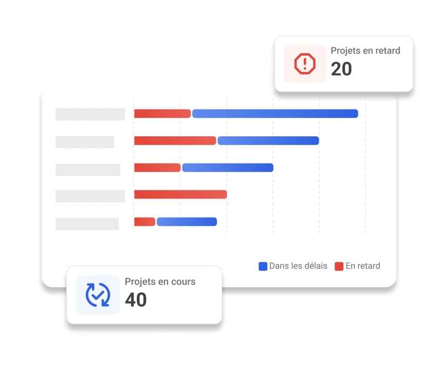 - Consultez les tâches dans une vue simplifiée avec une visibilité sur les projets à risque ou en retard.