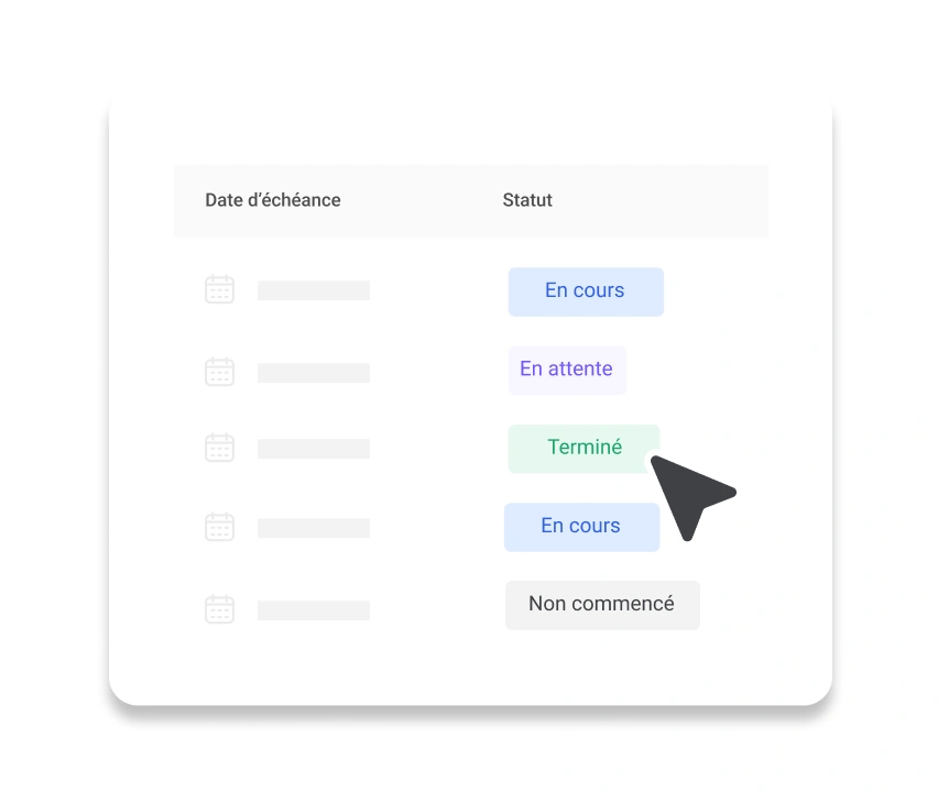 Mises à jour en temps réel et indicateurs de statut pour savoir où en est chaque tâche.
