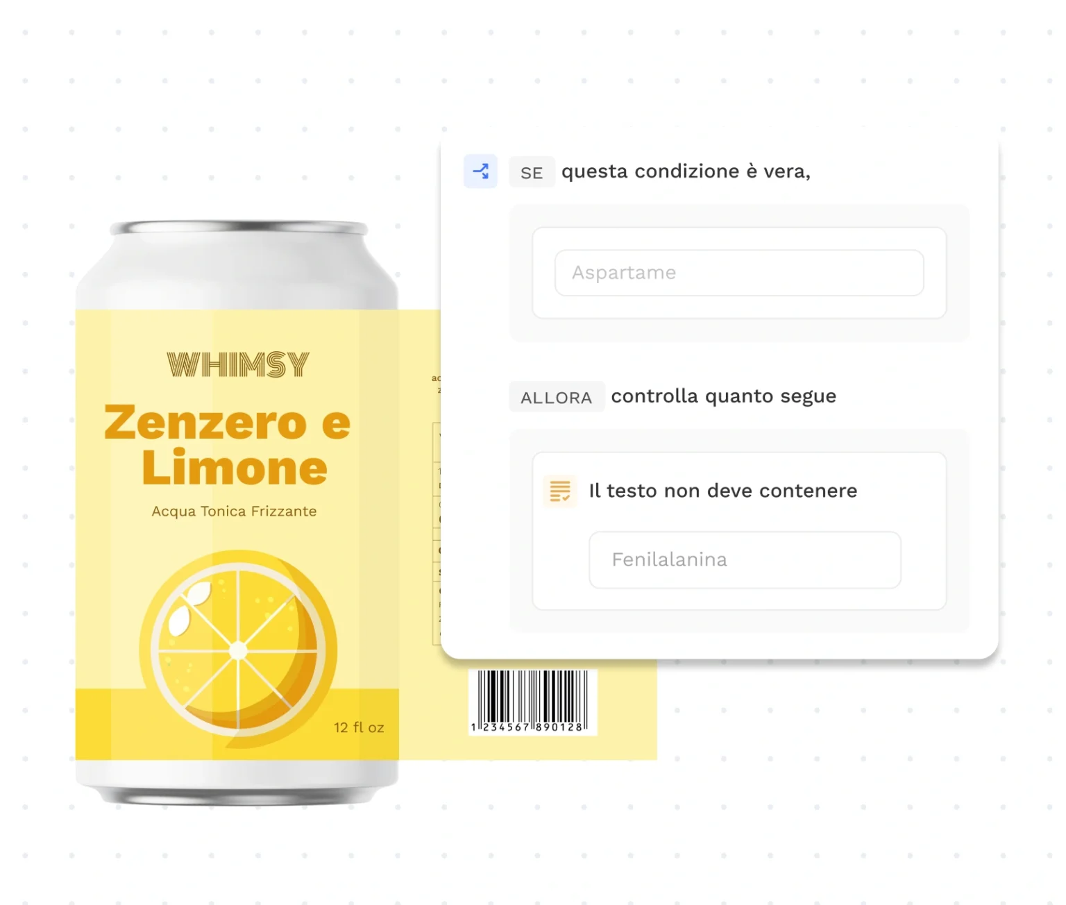 - Esempio: se appare “carne”, segnala i claim “vegano”; se sono elencati allergeni, verifica la formattazione regolamentata.